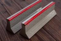 A barrier style obstacle with a hand engraved brick pattern. Featuring a red painted top row of engraved bricks. Made from strong, durable concrete.